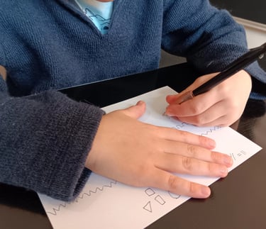 La première séance est celle du bilan graphomoteur qui va permettre de situer l’écriture de votre enfant par rapport aux attentes pour un enfant de son âge et de son niveau. C’est une étape obligatoire qui permet d’identifier les causes qui contribuent aux difficultés d’écriture (posture, tenue du stylo, crispations…).